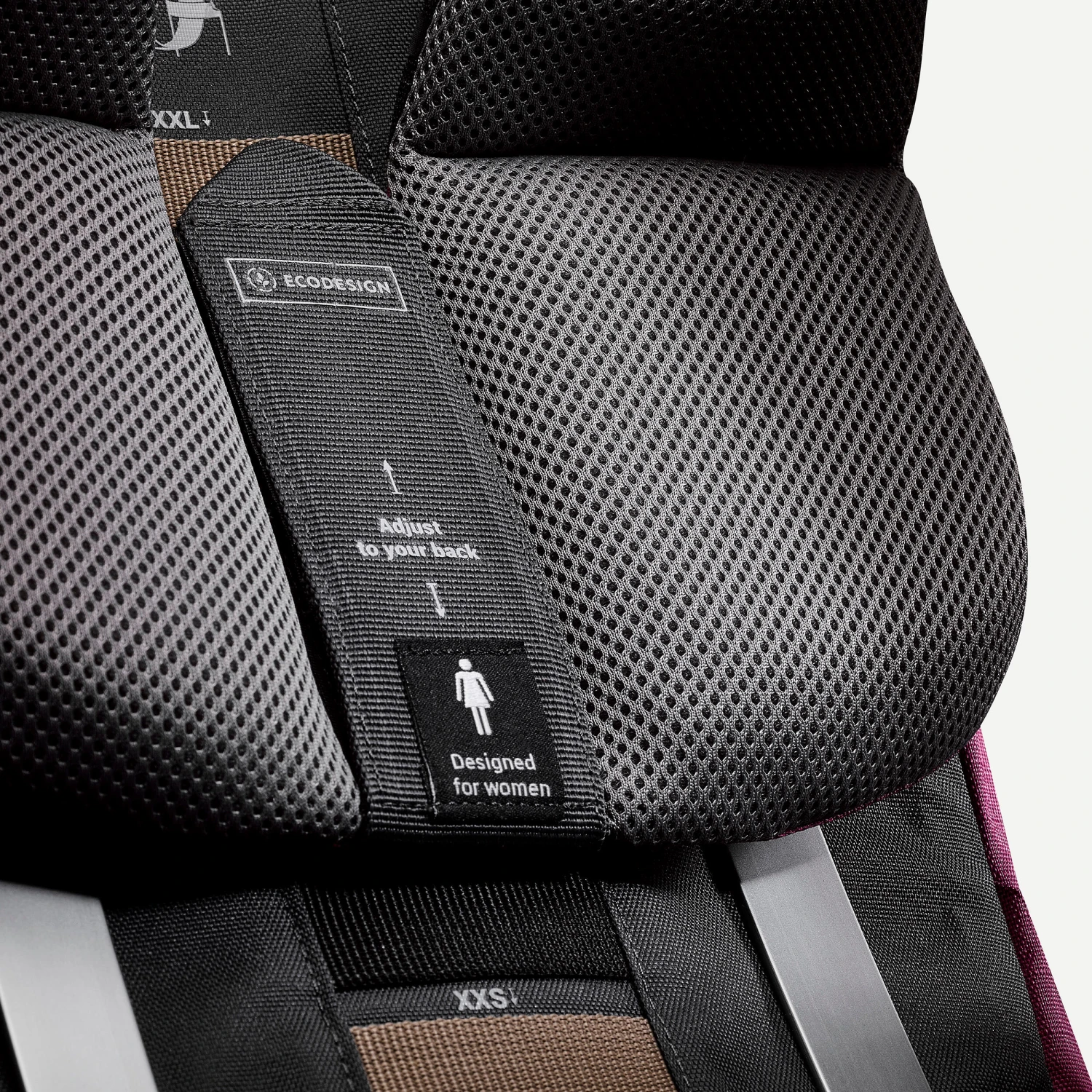 Robust backpack, with a generous volume of 60 L (+10 L extension). Designed for women setting off independently on a trek.This backpack, combining resistance and carrying comfort, has undergone 188 laboratory tests and been tested for more than 280 hours on the ground. Its Symbium concept is the most comfortable of the range.